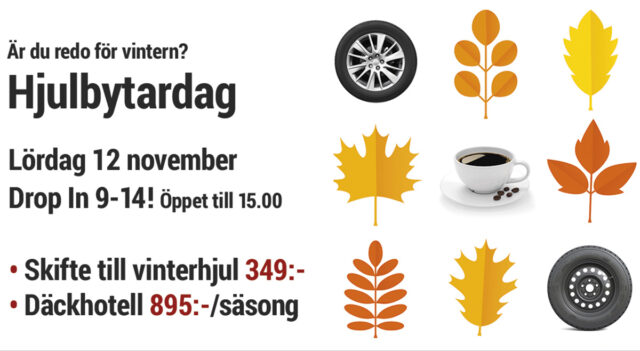 Vintern står för dörren och det är dags för däckbyte. Hurtigs Bil bjuder sin vana trogen in till hjulbytardagen, som går av stapeln lördagen den 12 november mellan 9 och 15, på plats hos Hurtigs Bil i Kungälv. Hurtigs Bils hjulbytardag kommer att te sig som en mässa i miniformat, bestående av en rad trevliga…